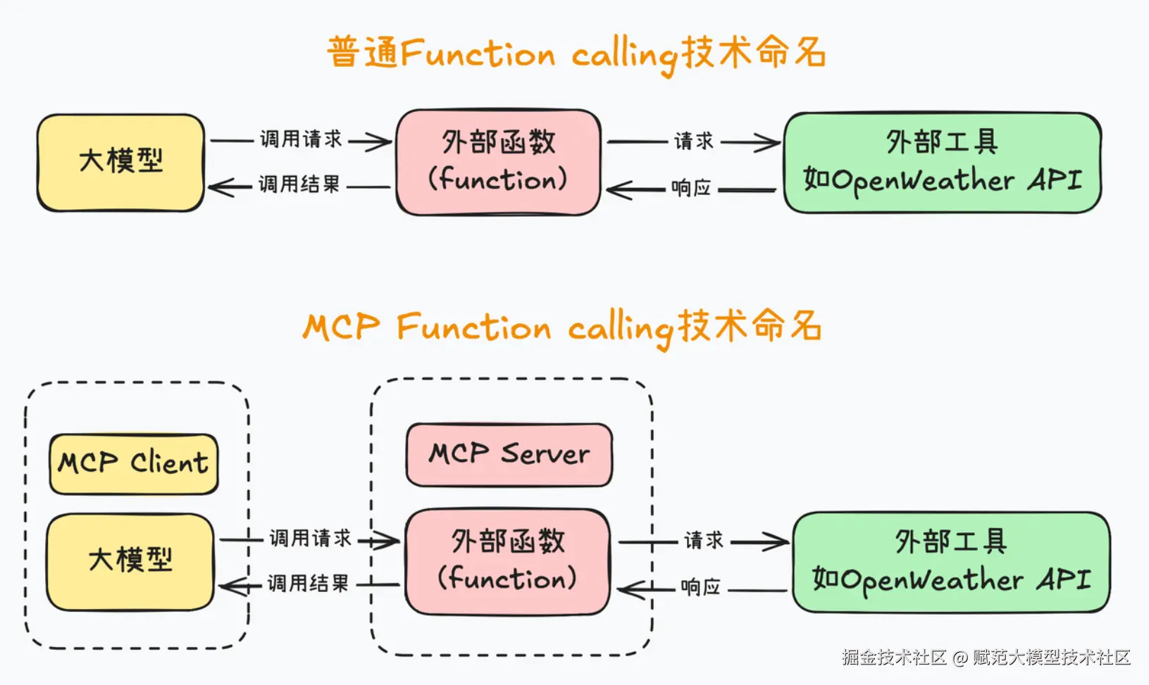 毫无疑问,Function calling的诞生意义重大,这项技术目前也成为大模型调用外部工具的基本技术范式,哪怕是MCP盛行的今天,底层仍然是Function calling执行流程。