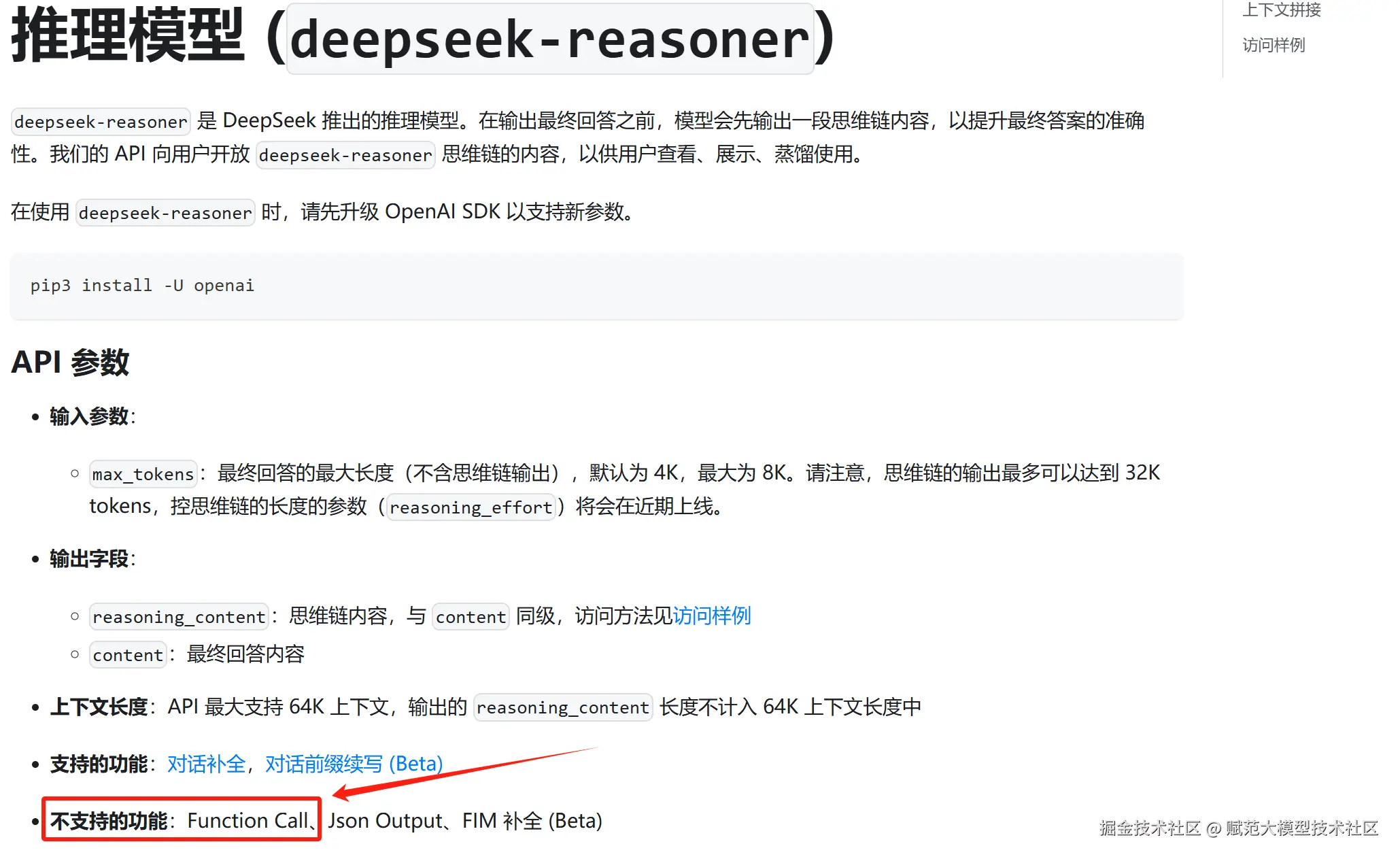 不过为了更好的学习本期公开课,需要重点强调的是关于大模型的Function calling的能力如何而来。我们都知道,对于当前大模型来说,有些模型有Function calling能力,如DeepSeek-V3模型,而有些模型没有,如DeepSeek-R1模型: