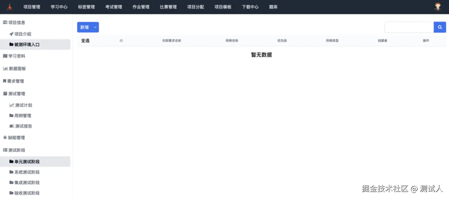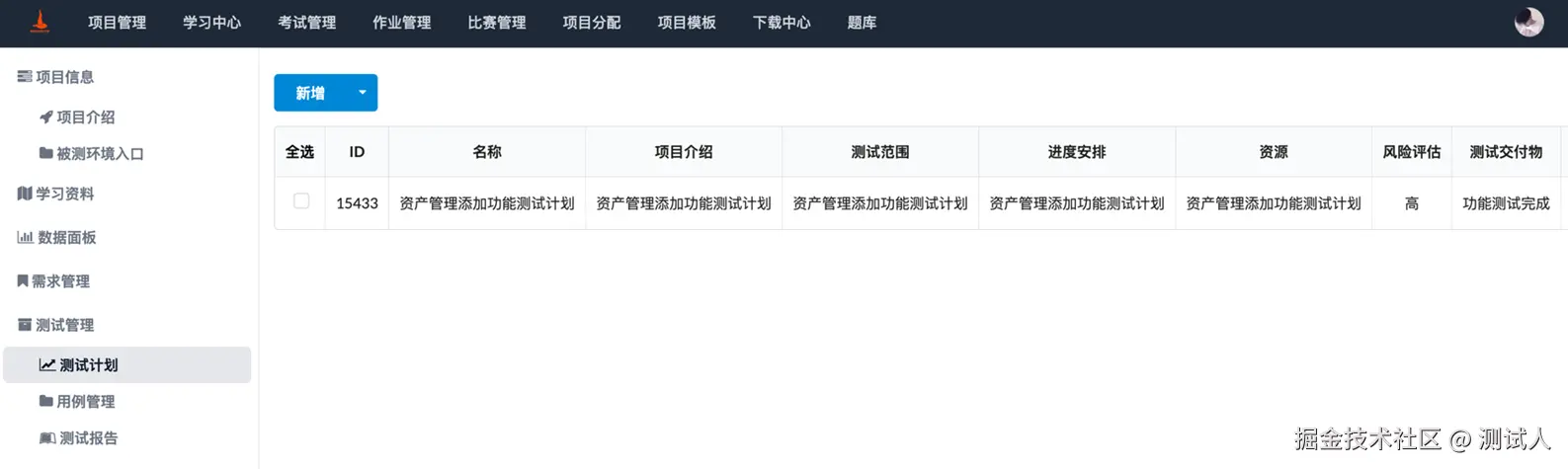 (13) 测试管理:包含测试计划、用例管理和测试报告,教师可以查看、添加、修改、删除自己和团队学生的测试计划、测试用例、测试报告。