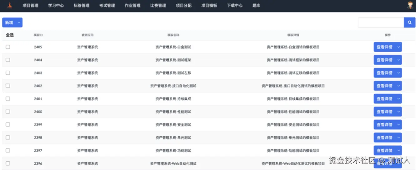 (5)项目模版:教师可以查看所有项目模板,并可以添加、修改、删除所有项目模版。