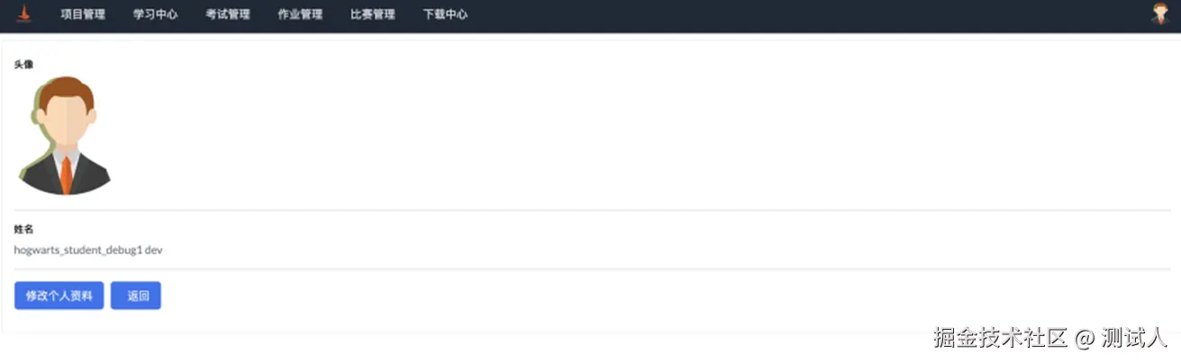 (5)项目信息:学生可以查看项目信息和被测环境入口。