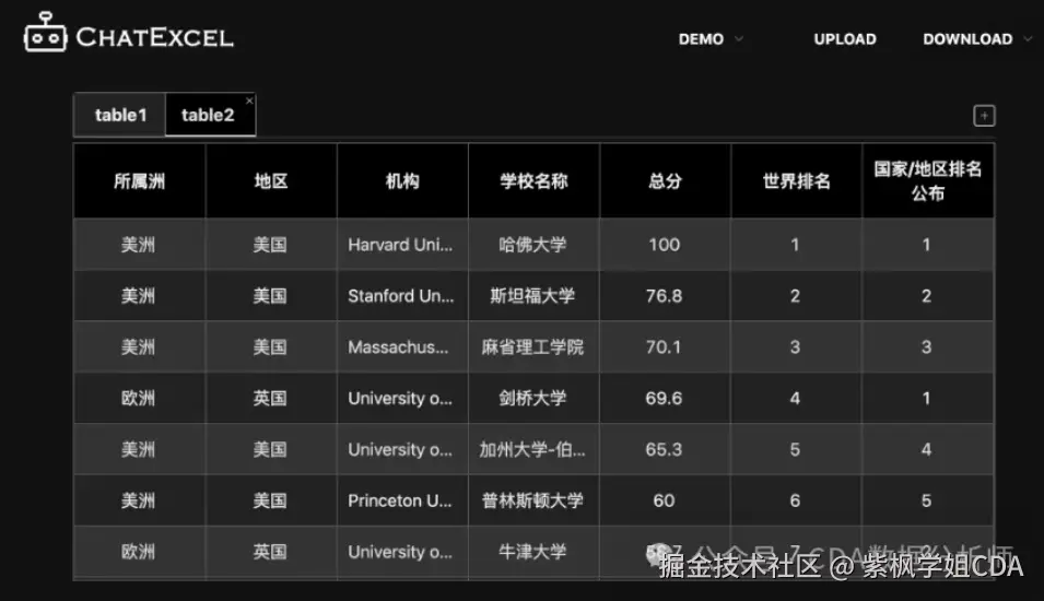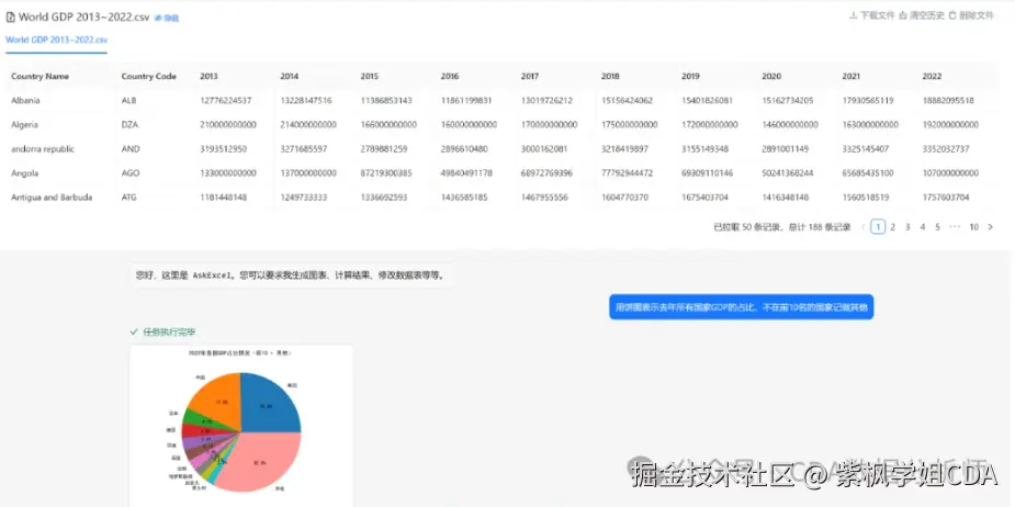 ChatExcel会自动分析数据,执行相应的操作,并生成结果。你可以查看生成的图表、分析报告,或者下载处理后的表格。