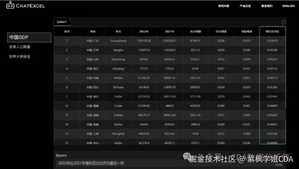 同时,ChatExcel还能进行预测分析,根据历史数据预测未来的趋势,为用户的决策提供有力的支持。它是一款极具创新性的数据分析工具,强烈建议大家利用起来。