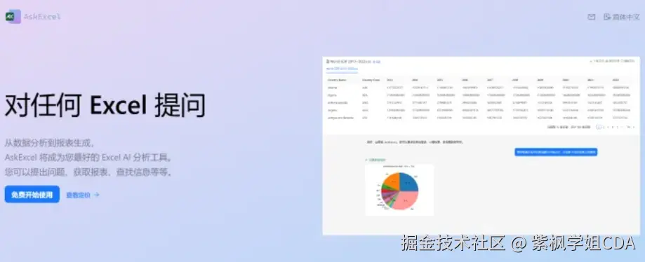 Ask Excel 是一款强大的 AI 数据分析工具,能够通过自然语言处理简化 Excel 数据分析和报告生成过程,适合学生、研究人员和商业人士使用。