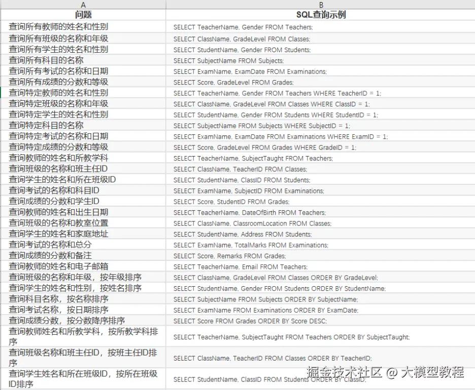 基于日常工作遇到的查询需求,我们需要提前准备多样化的SQL示例(本Demo数量为100条SQL查询示例),同时需要保证和测试这些SQL的准确性。后续我们需要将这些SQL查询示例导入到MaxKB知识库中。具体准备过程可以参考下图,采用Execl方式进行绘制和编写。