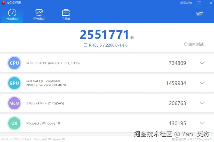 Unigine Superposition 是款专业图形基准测试工具,基于 Unigine 2 引擎,能以最高 8K 渲染分辨率压榨 GPU 性能,极度考验GPU的稳定性,给这几款云电脑上上强度