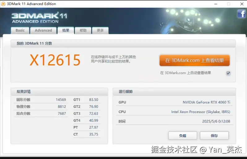 最后我们使用3dmark单独评测游戏性能,这里我们选择Extreme极限测试,它不仅测试机器的硬件性能,还会执行压力测试检测稳定性。不难发现ToDesk分数遥遥领先,如果仔细查看会图形分数主要考查的就是GPU性能,5090的确发挥了它应有的实力,顺网云和青椒云的性能持平,海马云稍逊。