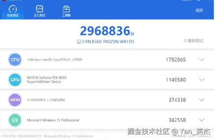 ToDesk云电脑 提供的 13 代 i7-13790F 处理器,作为 13 代 i7 次顶级型号,16 核 24 线程的配置使其在多任务处理、大型软件与游戏运行中表现出色,性能稳居天梯图前列。不过相比最新 14 代及 i9 系列,其在单核睿频及极限多线程负载下存在一定差距,但对多数用户已完全够用,并在此次测评中单从处理器这一项就远胜于其他云产品。