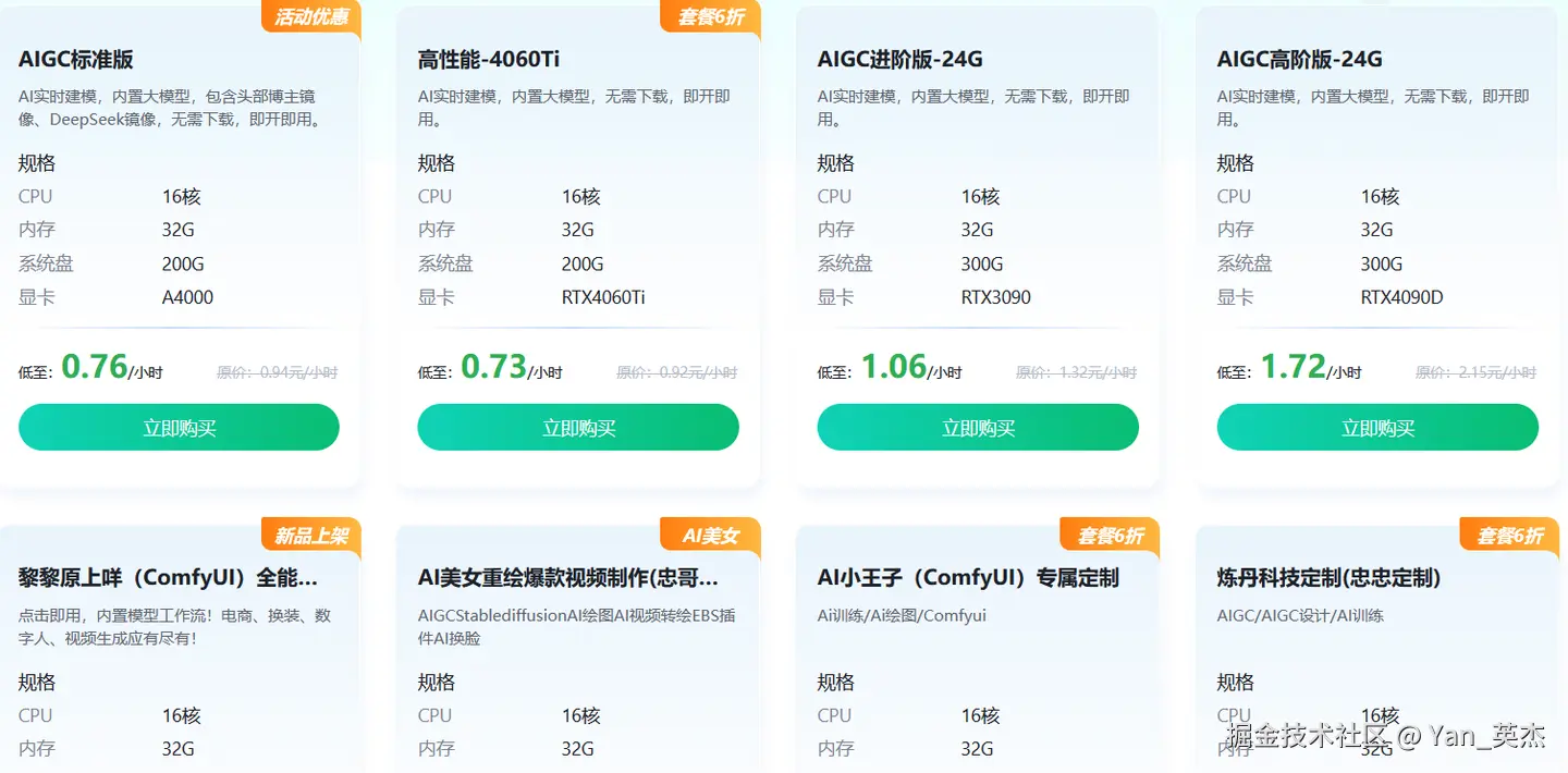 青椒云则略有不同,普通套餐是服务器划拨的计算资源,高级套餐包含独立显卡,由于没有4070显卡我们选择4060用于以下测评,但相比前代提升有限,显存容量在部分场景下略显不足。