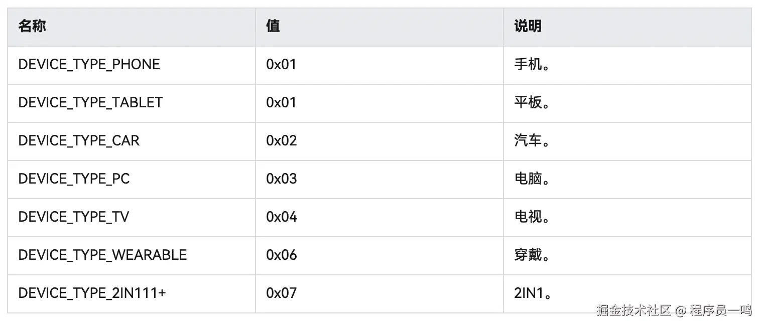 获取设备类型,可以使用deviceType属性,有七个值可以选择。