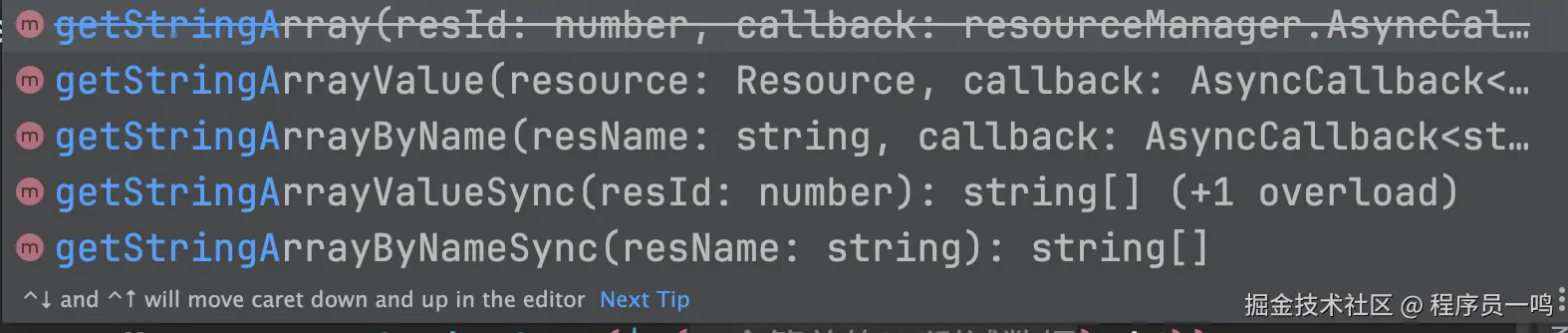 有四个方法可以获取,分别是getStringArrayValue,getStringArrayByName,getStringArrayValueSync
