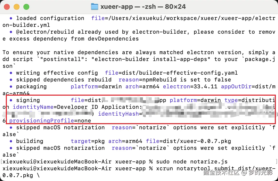 直接执行该文件即可,当然你也可以用electron-builder提供的hook:afterSign,实现自动化公证