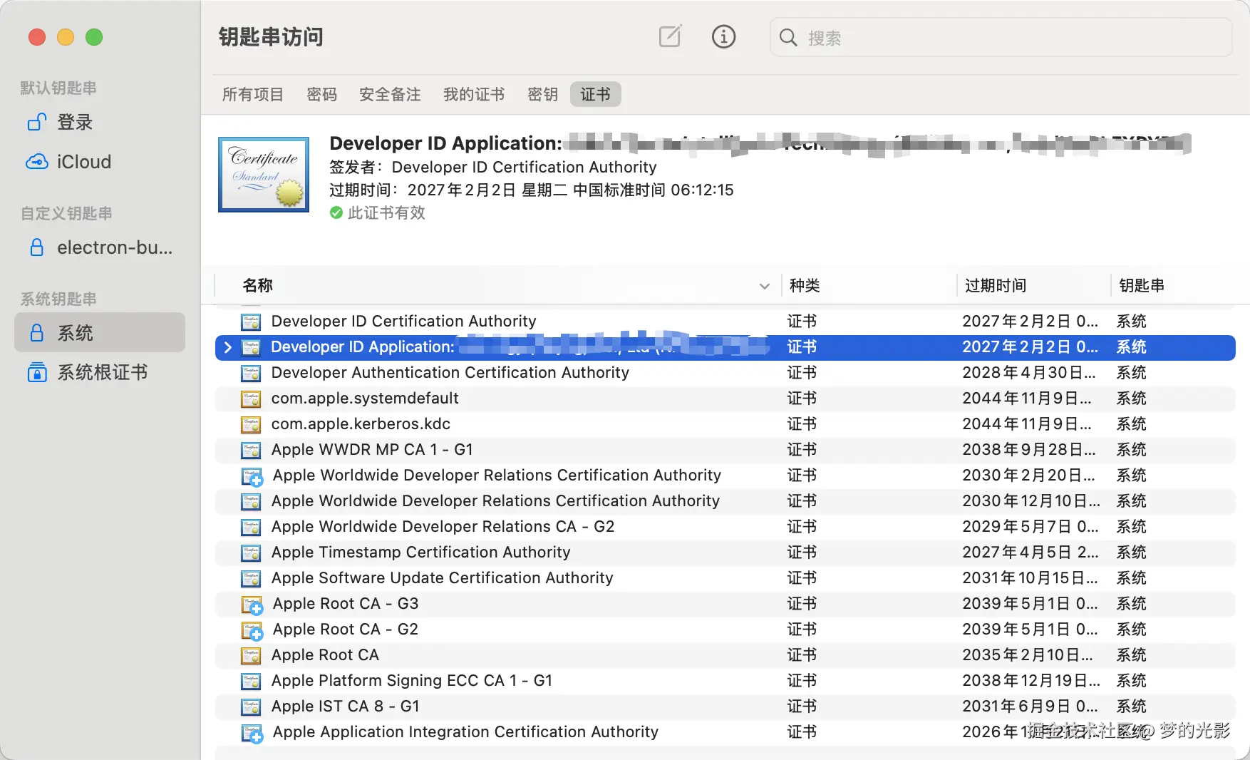 至此,准备工作完成,如果你需要打包为pkg,还是按照上述流程走,在你的钥匙串里安装Developer ID Installer: 公司名字(teamId) 类似的证书