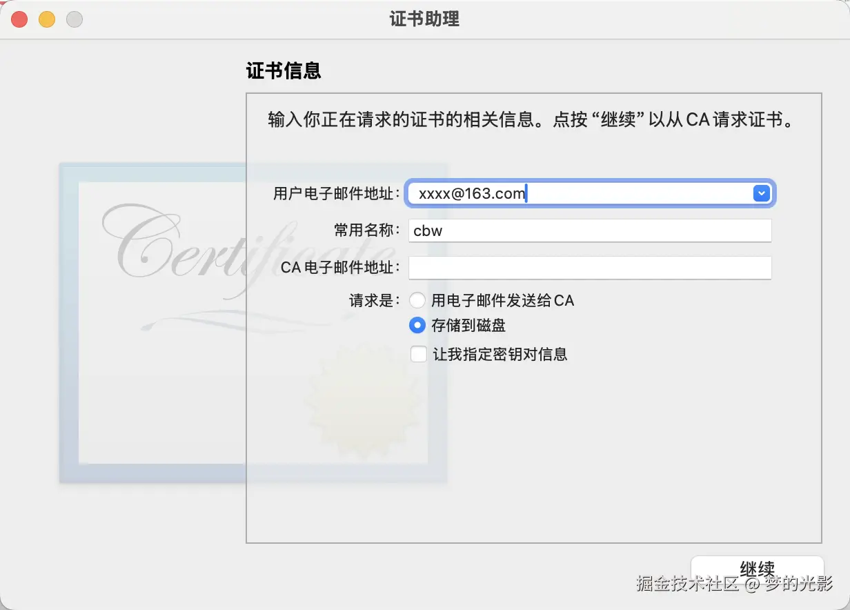 填写对应内容,CA电子邮件地址不用填,要选择存储到磁盘