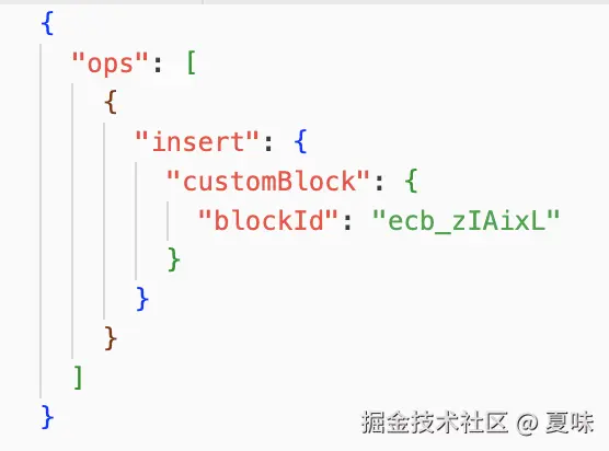 插入自定义块后,editorContext.getContent 获取编辑器 delta 数据中,同样也可以找到 blockId