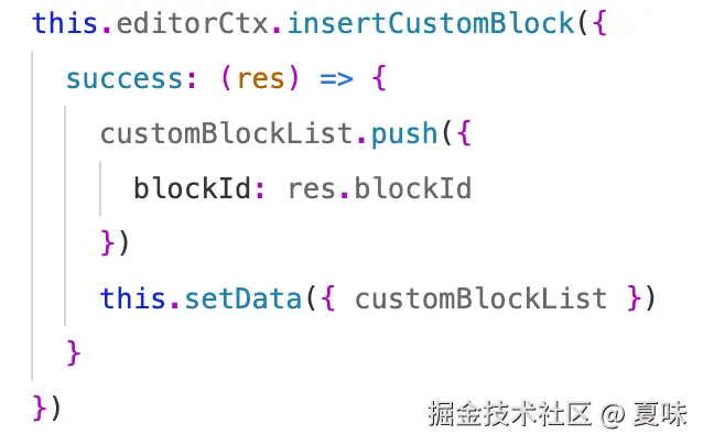 blockId 通过 editorContext.insertCustomBlock 来获得
