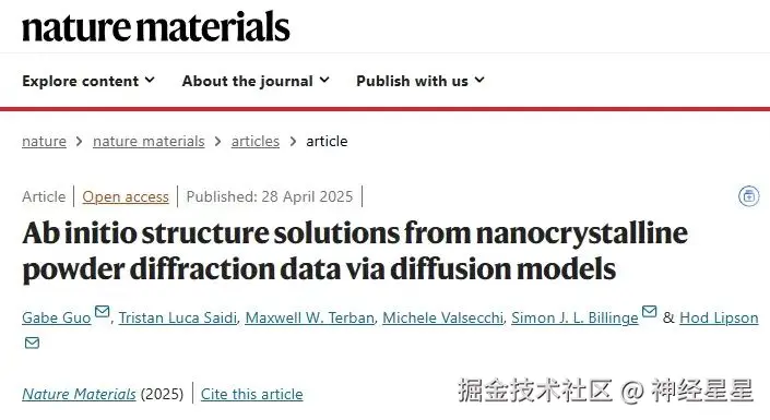 相关研究以「Ab initio structure solutions from nanocrystalline powder diffraction data via diffusion models」为题,发表于 Nature Materials 。