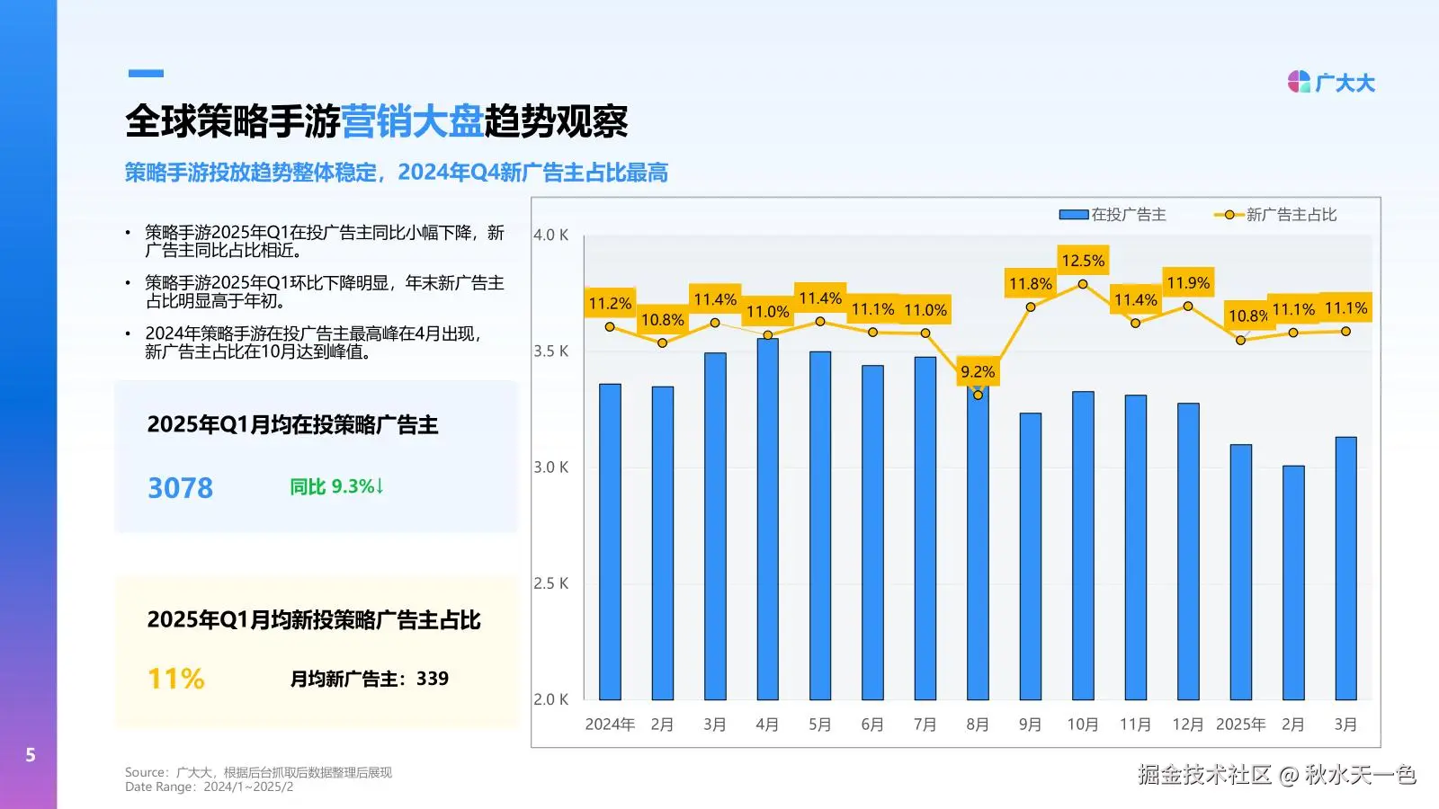 25年Q1策略手游新广告主占比11%,新素材占比超51%