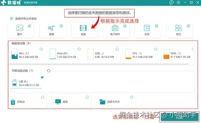 - 支持几十种文件类型进行扫描恢复,文档、图片、视频、音频等类型可进行筛选扫描;