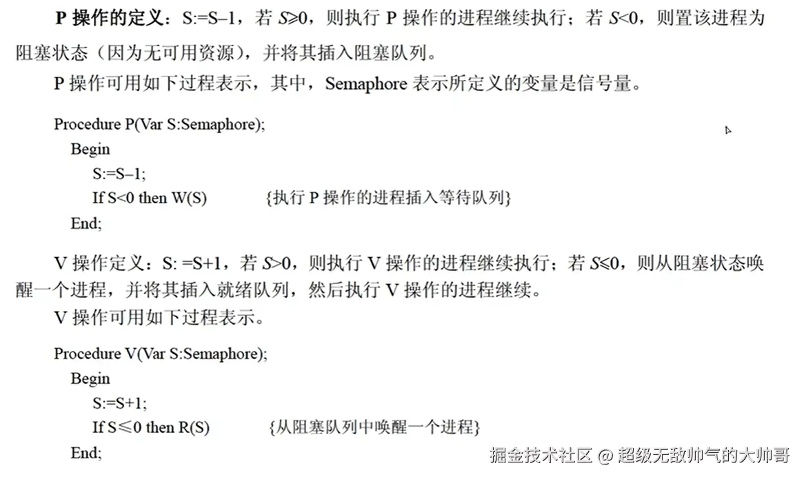 信号量S的物理意义:S>=0表示某资源数的可用数,若S<0,则其绝对值表示阻塞队列中等待该资源数的进程数;