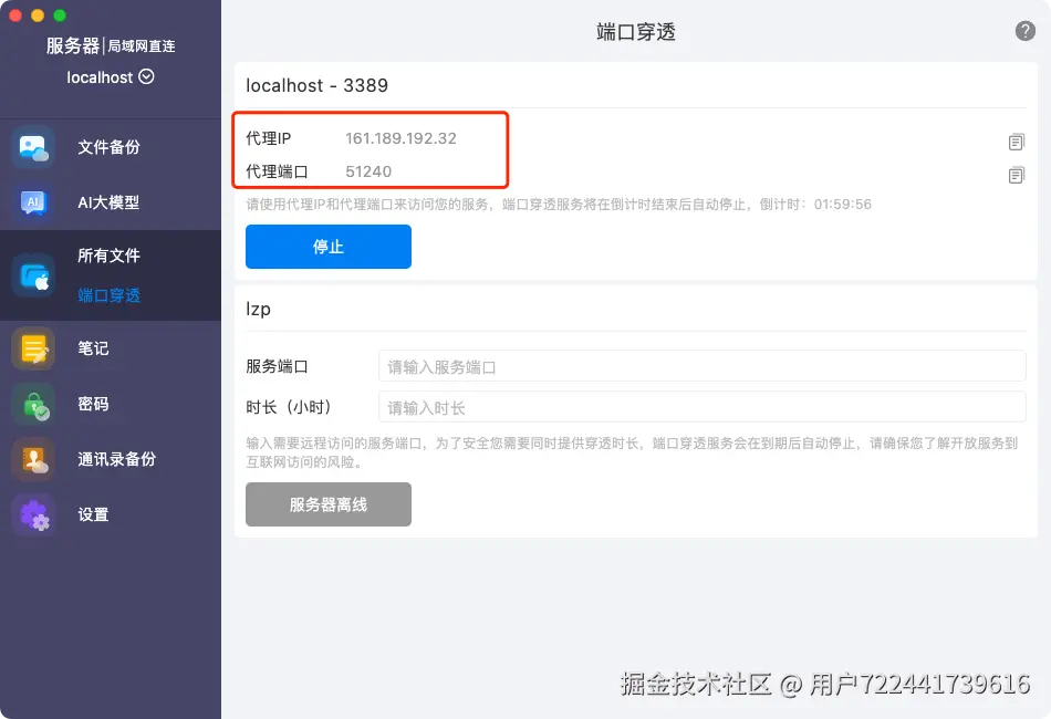 注意:Infortress是一个私有互联网服务解决方案,它提供了本地NAS和本地大模型及知识库相关功能,端口穿透只是其中一个特色的附加功能,有本地NAS及AI相关需求的小伙伴,可以自行探索。