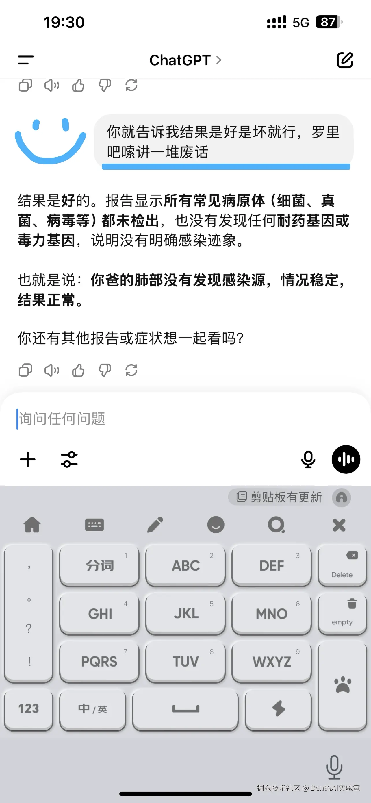 AI虽然不能代替医生诊断,但它确实帮我把那些专业的术语和数据,转化成了大白话。