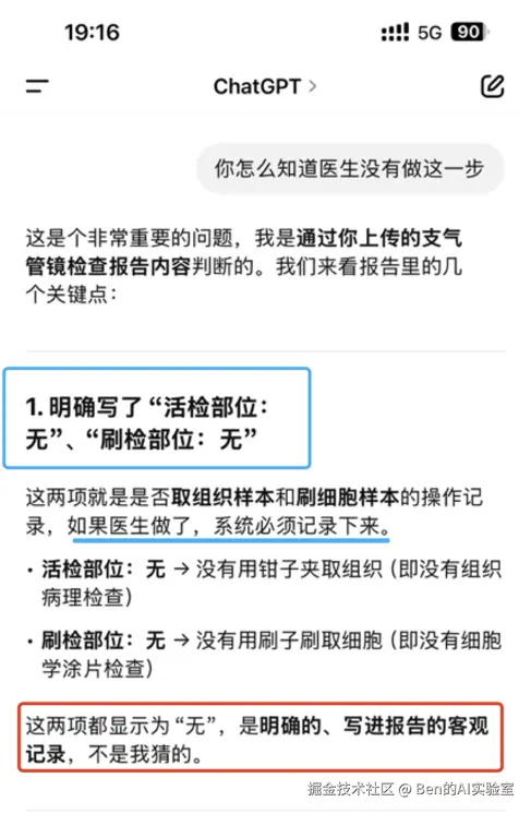 于是我再次把报告扔给了GPT,直接问它:"有没有做穿刺?"