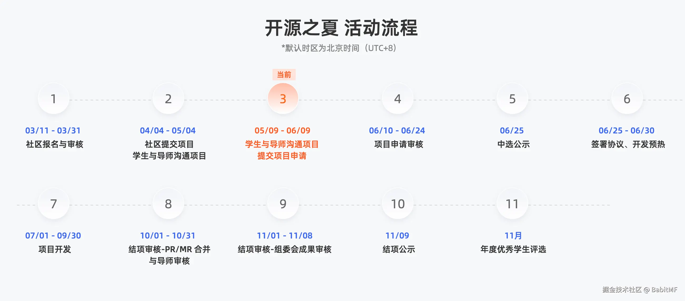 同学们可以通过开源之夏官网和学生指南查看更多关于活动介绍、流程,以及参与方法的细节。