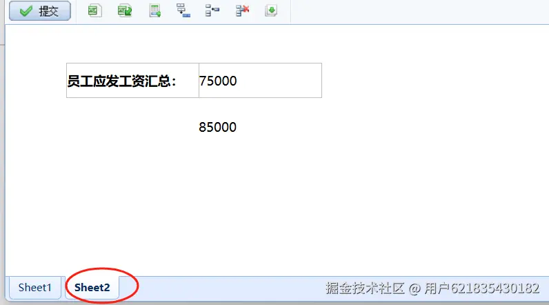 我们继续以上表为例,增加一个 sheet2, 形成填报表组,获取 sheet1 中的应发工资汇总数到 sheet2 。