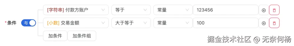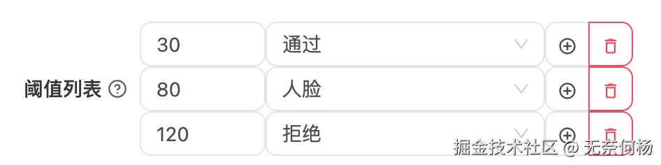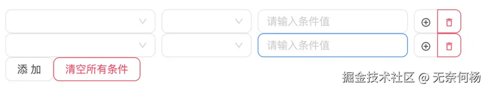 看到了这里的添加和删除从文字变为图标,那么已有的所有这样的组合类组件正好趁此机会全部统一掉,如:条件组合组件、权重设置组件、字段组合组件等等