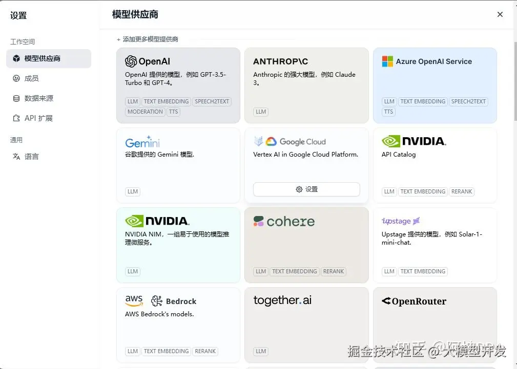 支持接入的大模型供应商几乎涵盖了全球所有知名大模型供应商
