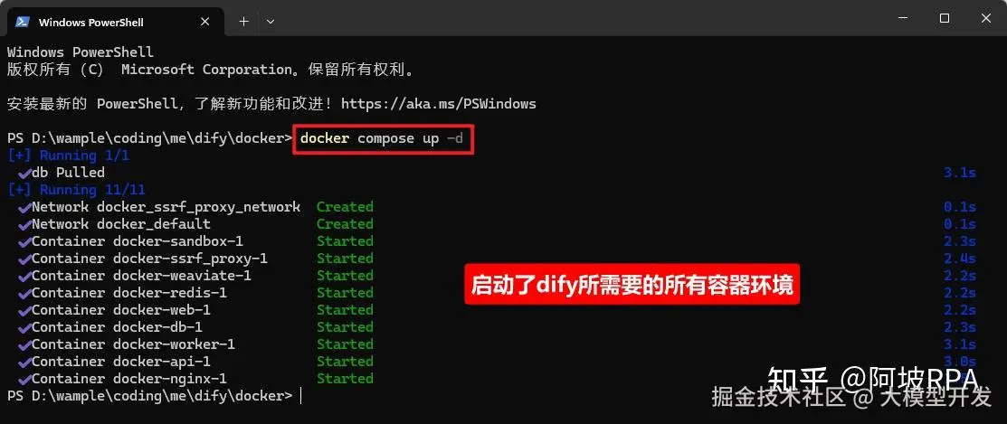 此时回到docker桌面客户端可看到,所有dify所需要的环境都已经运行起来了