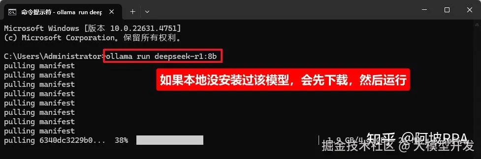 ollama安装完后,没有图形界面,安装大模型,可以类比为docker拉取镜像,因为很多操作命令类似