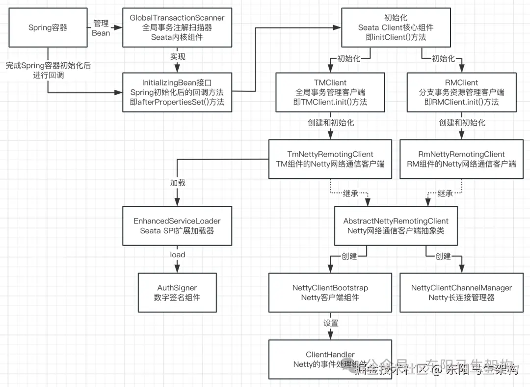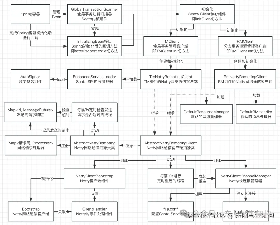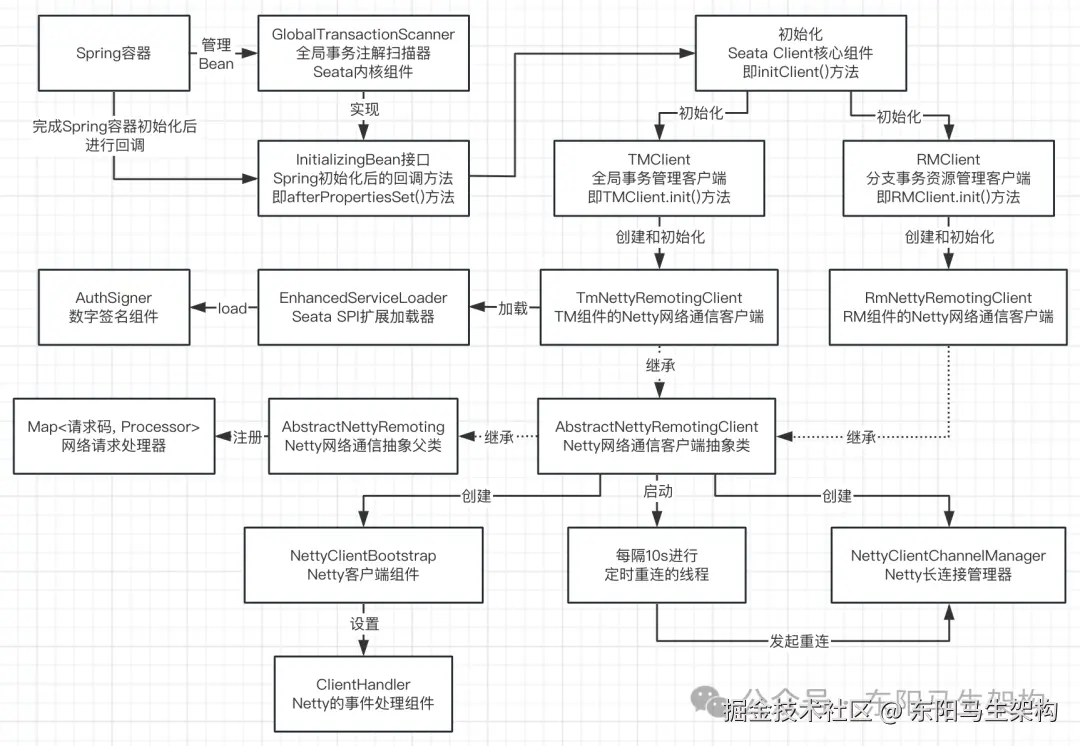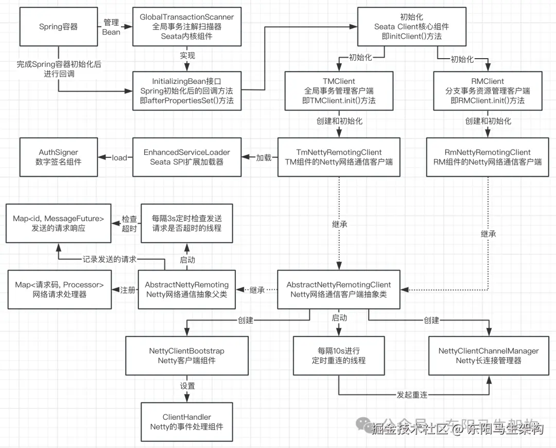 全局事务注解扫描器GlobalTransactionScanner的初始化主要做了如下三项工作: