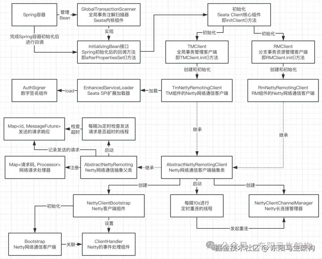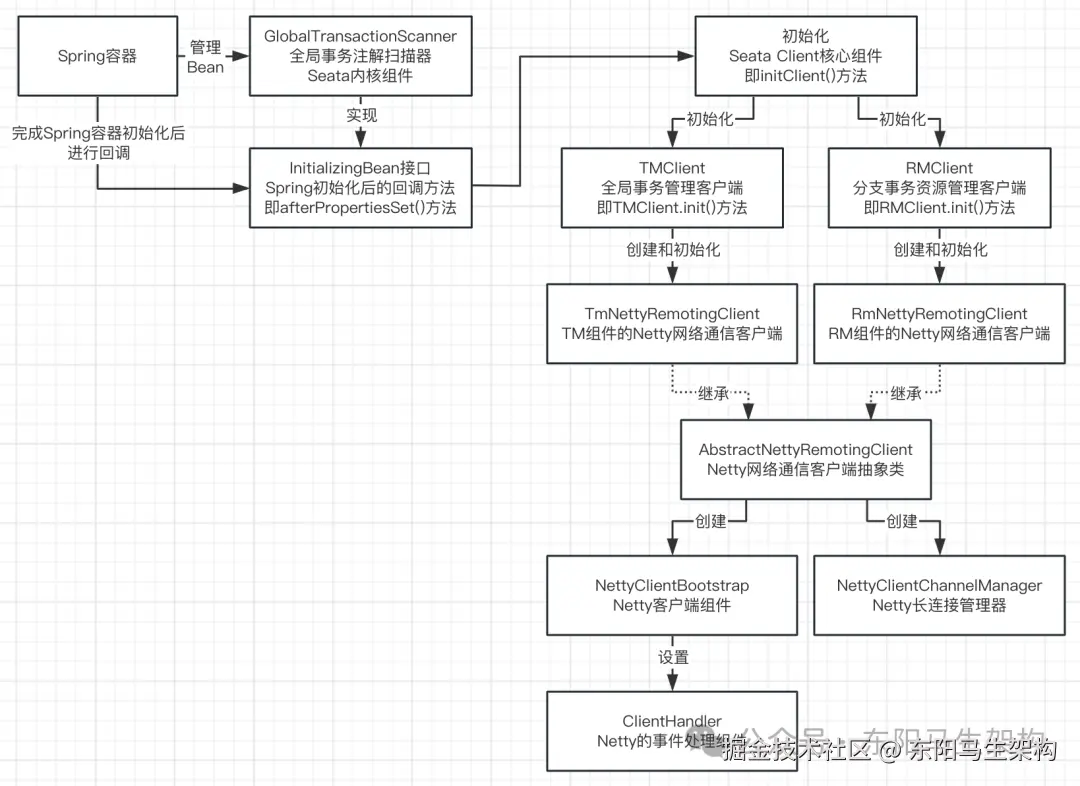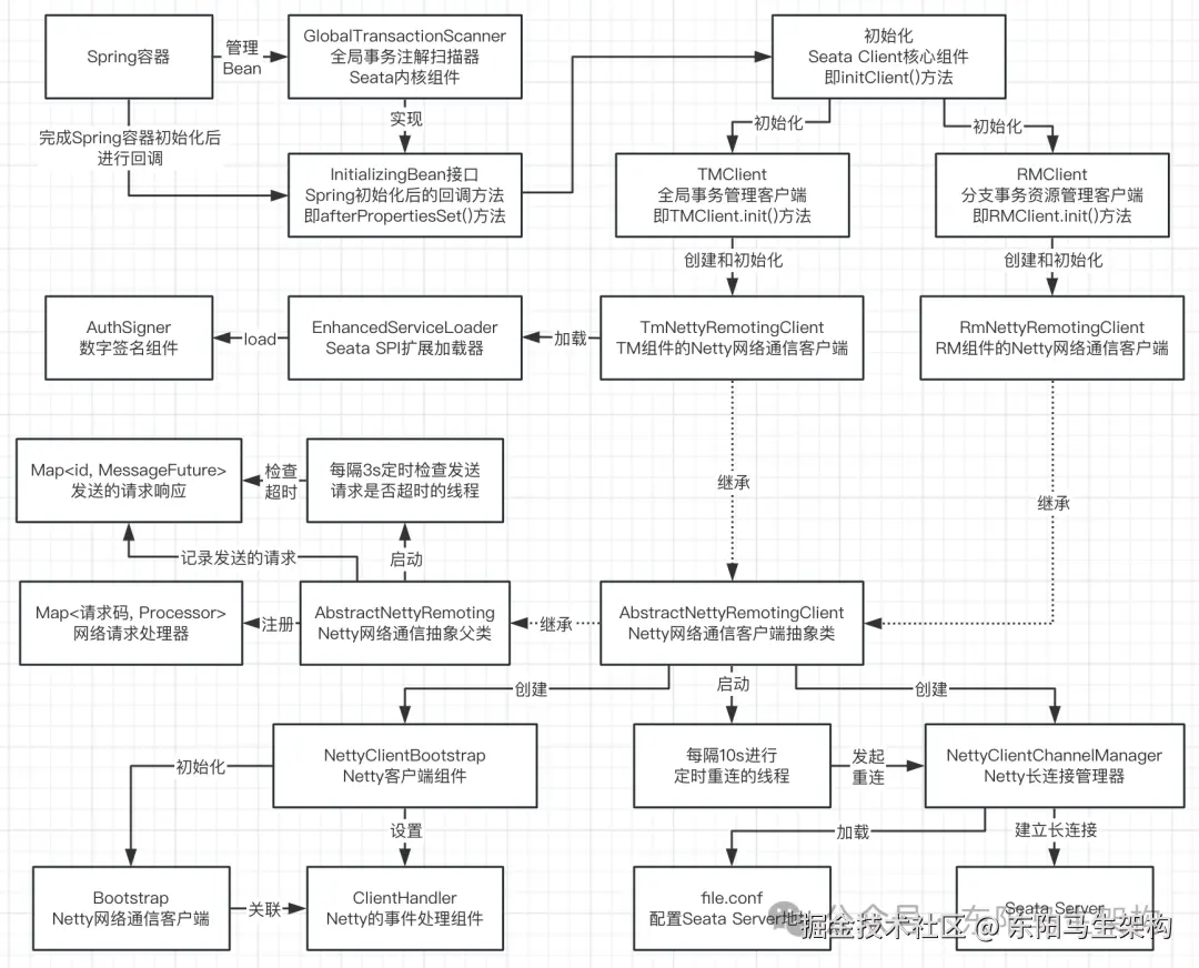 全局事务注解扫描器GlobalTransactionScanner的初始化主要做了如下三项工作: