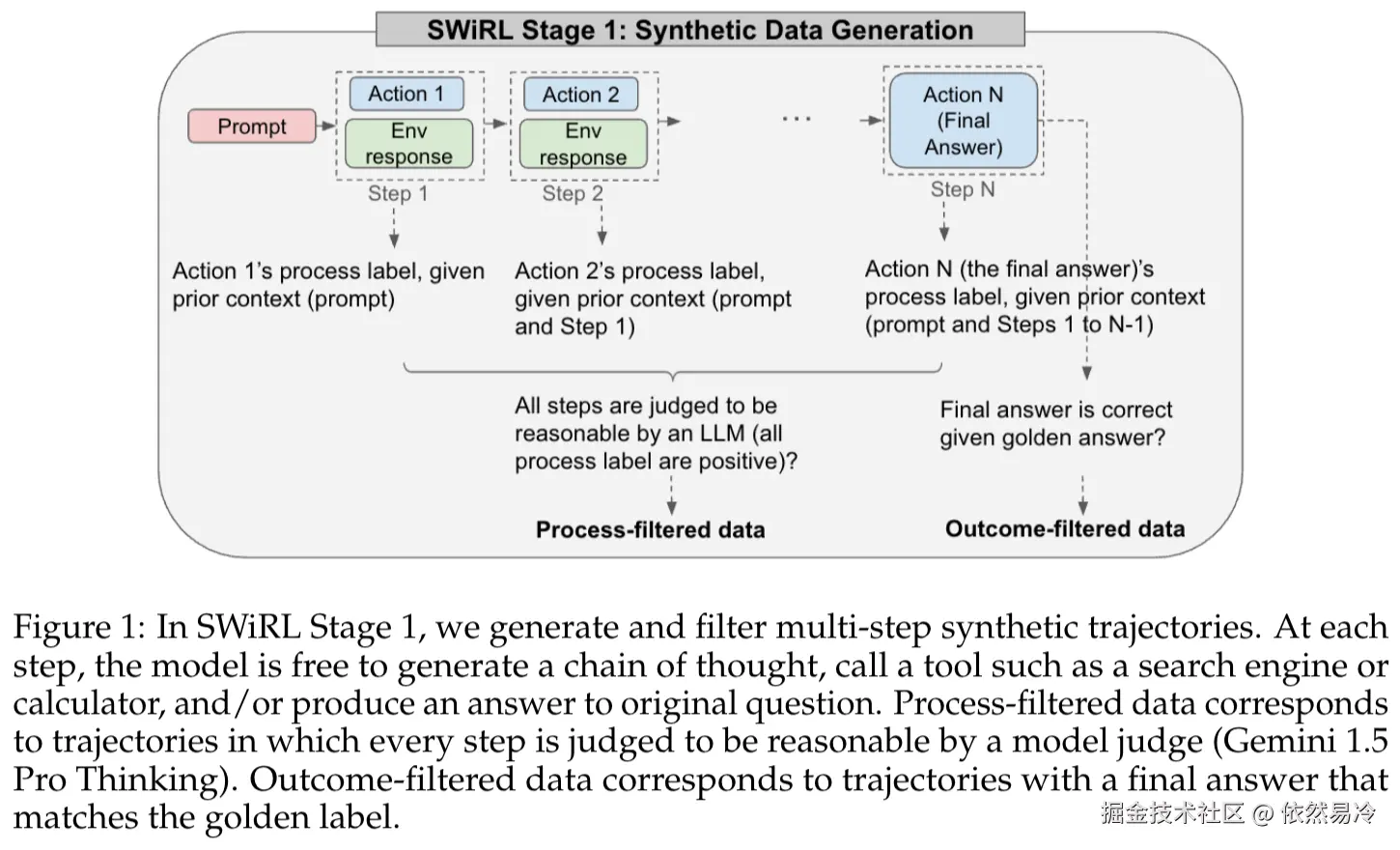 图1展示的是SWiRL的第一阶段:合成数据生成 。流程如下: