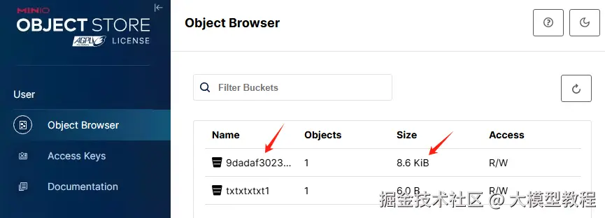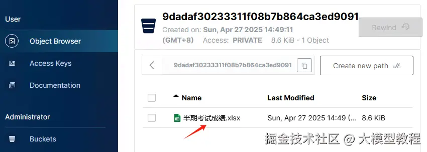 文件上传是保存在minio里面的,登录minio后台就可以看到了。