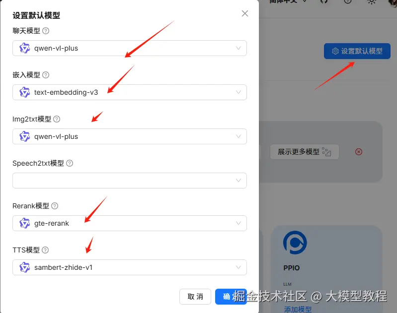 添加成功后,设置系统默认模型