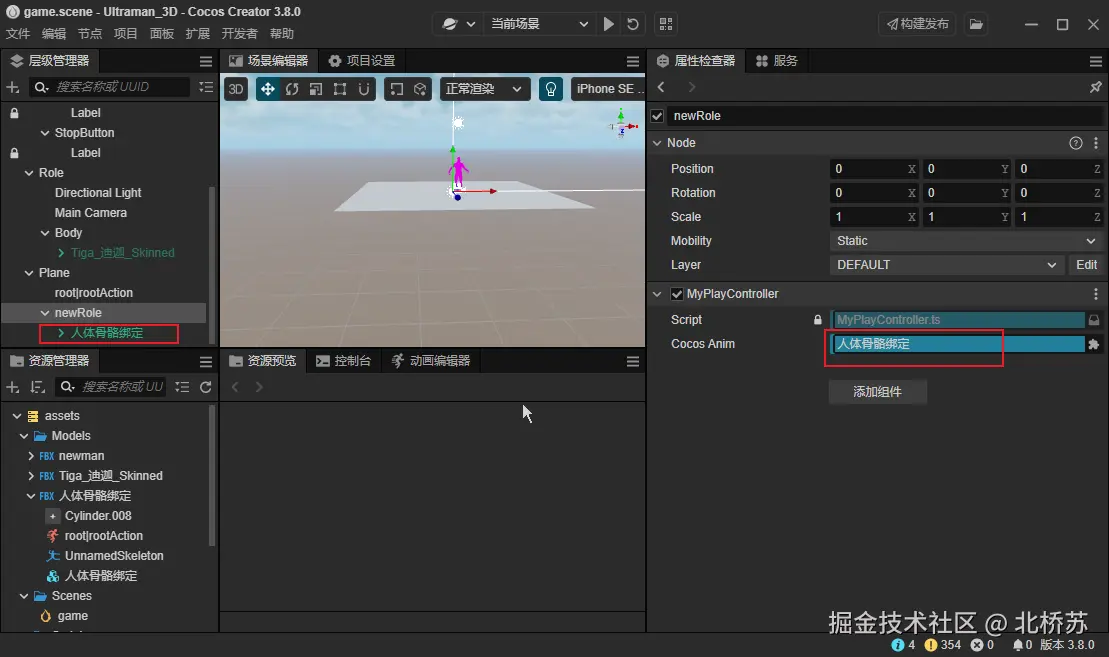 首先将有动画的模型导出为 Fbx,然后将其复制到 CocosCreator 项目的 assets 下的某个位置。