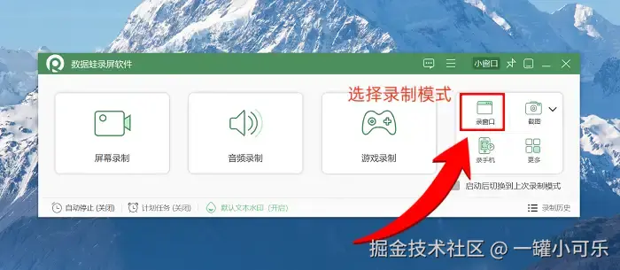 步骤1:在你的电脑上找到数据 蛙录屏软件的图标,双击打开它。软件打开后,你会看到界面上有多种录制模式可供选择,这里我们以 “窗口录制” 为例来进行讲解。