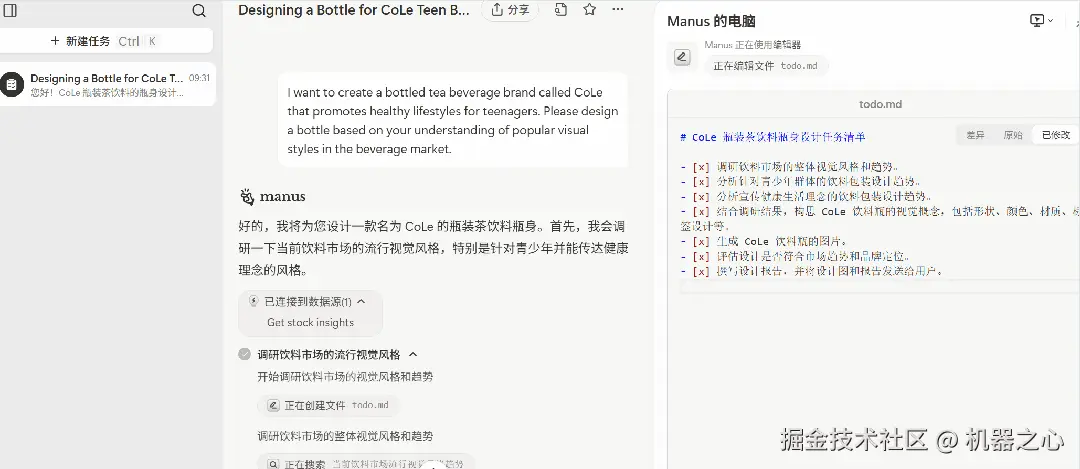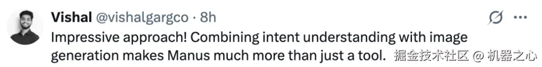 这里要强调一下,Manus 不只是生成图像,它能理解用户意图,规划解决方案,并知道如何有效地调用图像生成工具以及其他工具来完成你的任务。