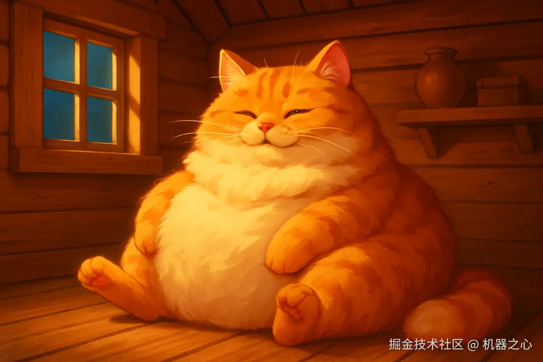「一张可爱的大肥猫,猫在小木屋里。」