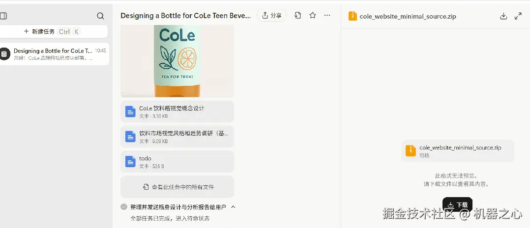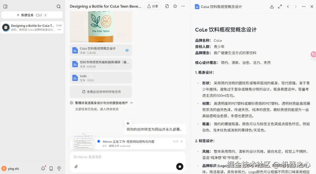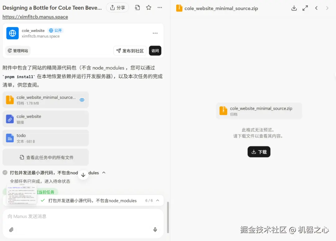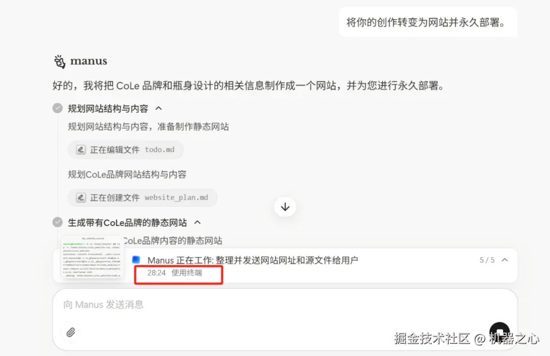 大约半个小时,Manus 终于成功部署了 CoLe 品牌网站。