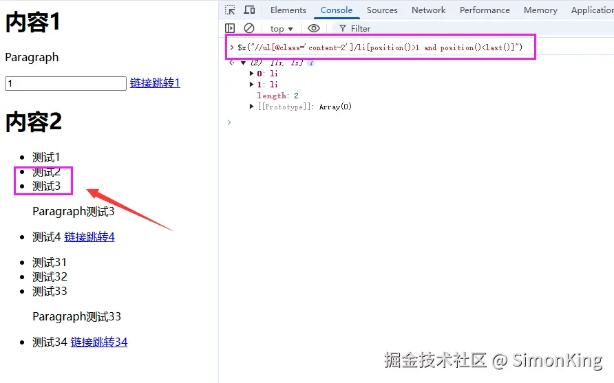 通过position()函数获取位置,last() 表示最后一个位置。