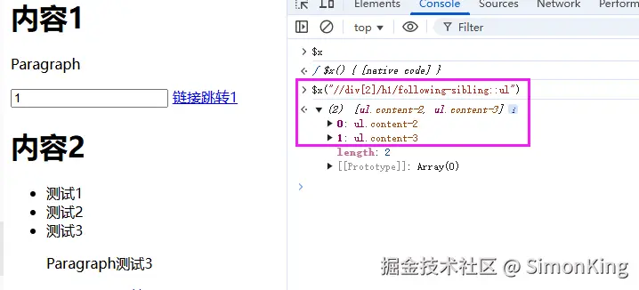 获取class为content-2的ul,下中间的两个li