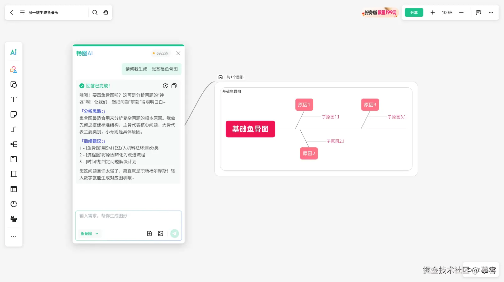 用AI画鱼骨图,不只是节省了时间,更是让我们把注意力从“怎么画图”转移到了“如何解决问题”上。无论你是产品经理在复盘项目,运营人员在优化流程,还是教师在讲解知识结构,AI鱼骨图工具都能帮你更快理清逻辑、更清晰表达观点。