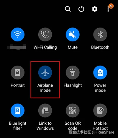 请向下滚动通知屏幕,然后突出显示“飞机”图标。几秒钟后,将其关闭,然后再次连接到您的 Wi-Fi 网络。