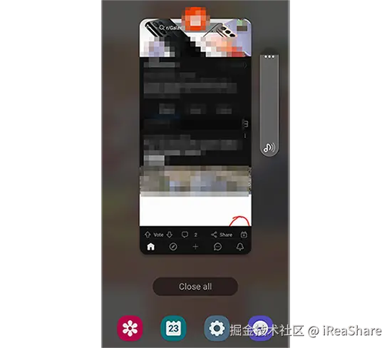 您可以向上滑动屏幕,点击“全部关闭”,清除后台所有正在运行的应用程序。