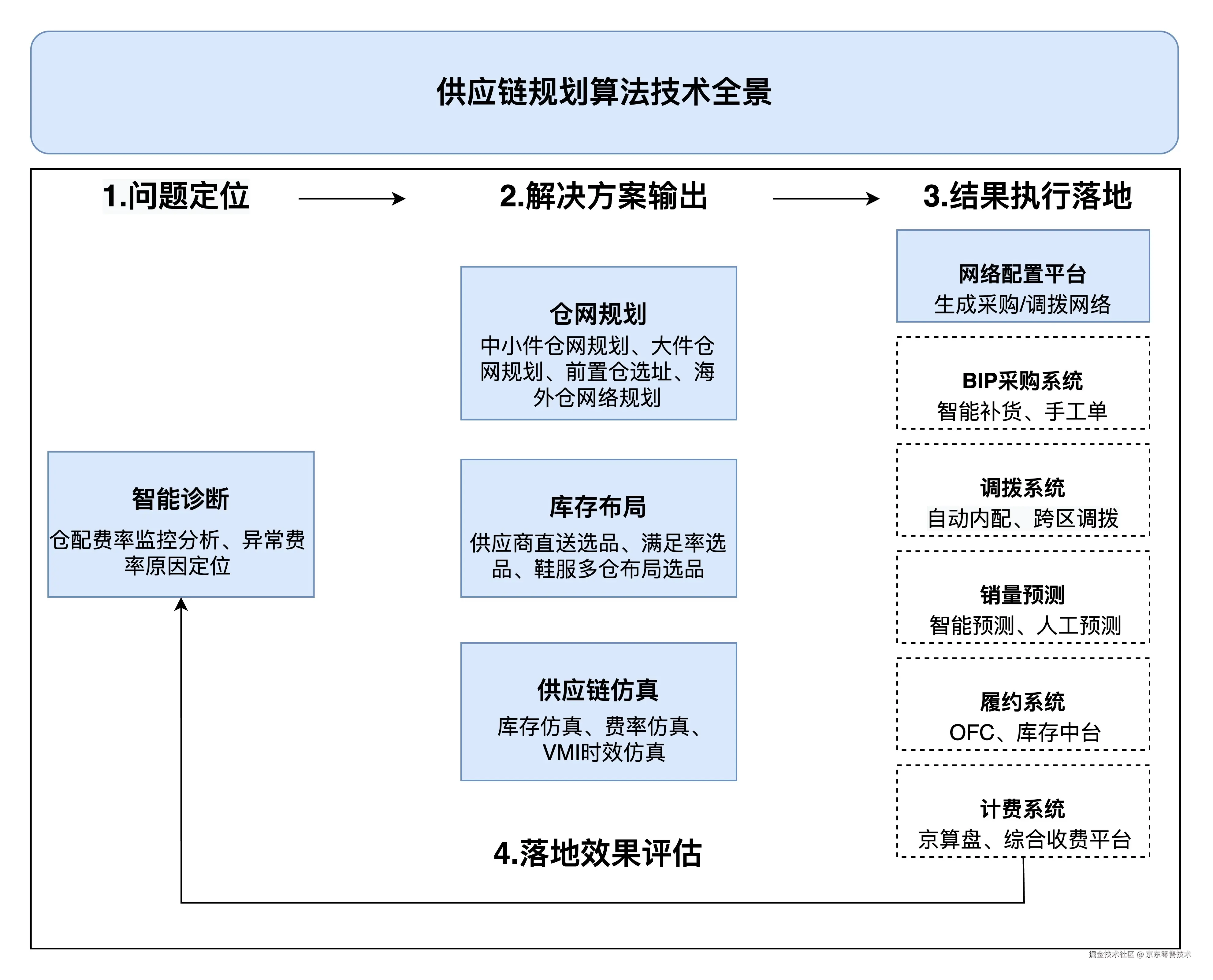 供应链智能规划算法以优化供应链成本、效率、体验为目标,搭建智能诊断-数智解决方案-落地执行-运营监控的供应链规划算法技术体系,在仓网规划、库存布局、供应链仿真、智能诊断领域等建立算法能力。本节将对仓网规划、库存布局、供应链仿真的算法及应用场景进行介绍。