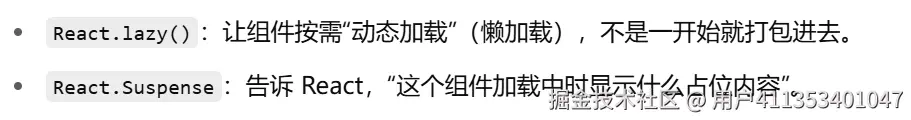 React.lazy和React.suspense只是减少了初始打包体积并没有真正实现想什么时候让组件加载就什么时候让组件加载 (即由开发者完全控制加载时机)